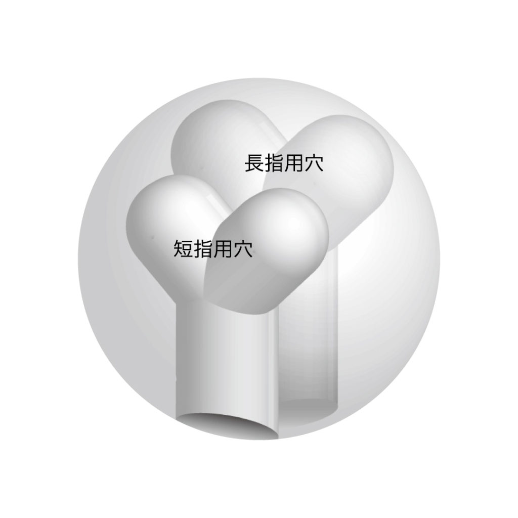 フィンガーエース鉄球タイプには指をひっかける2つの指穴があります。これは、指先の感覚を養い、かつ、指先を強化するためのものです。
